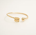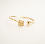 - “Gold clover open bangle with charm detail and adjustable cuff