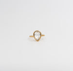 A single pear-cut solitaire set on a refined open band - elegant, modern and slightly architectural. A polished, feminine piece that reads luxe while remaining minimal and wearable every day.