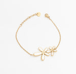 The Twin Bloom Bracelet sits light on the wrist with subtle floral